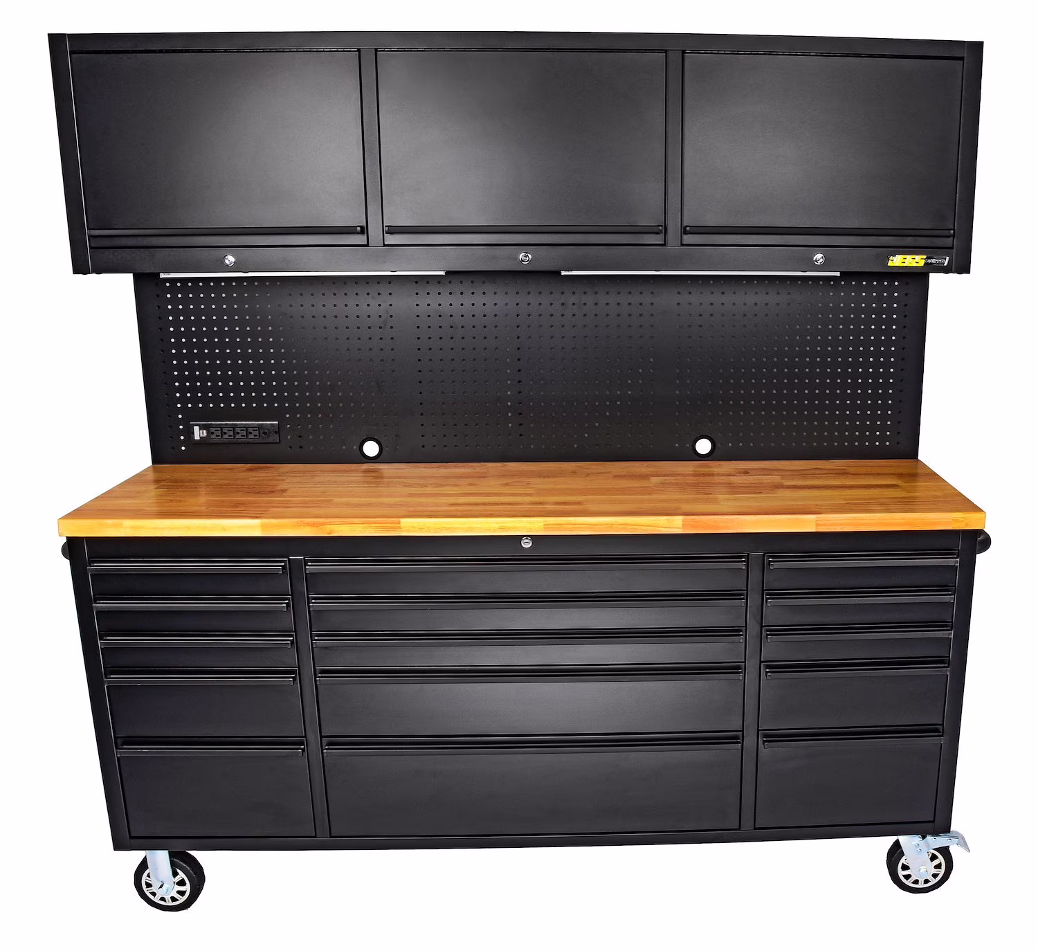 JEGS 81453 72 in. Rolling Tool Cabinet Black Powder-Coated Steel Includes: (15)
