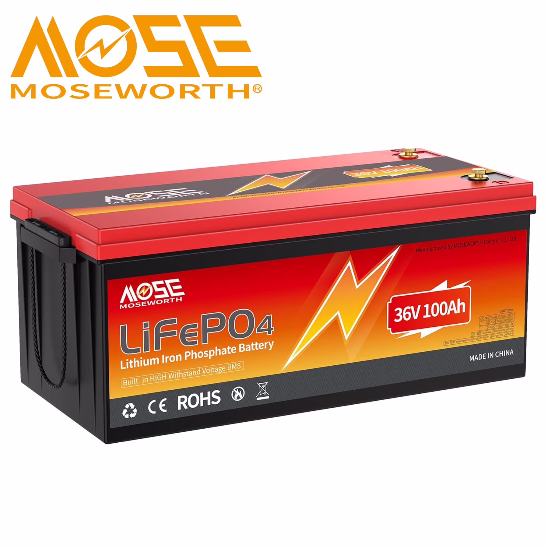 36V 100Ah LiFePO4 Golf Cart Battery,Built in 200A BMS,MOSEWORTH Lithium Batteries for RV,Marine,Van,Solar,Camping,Trolling Motor